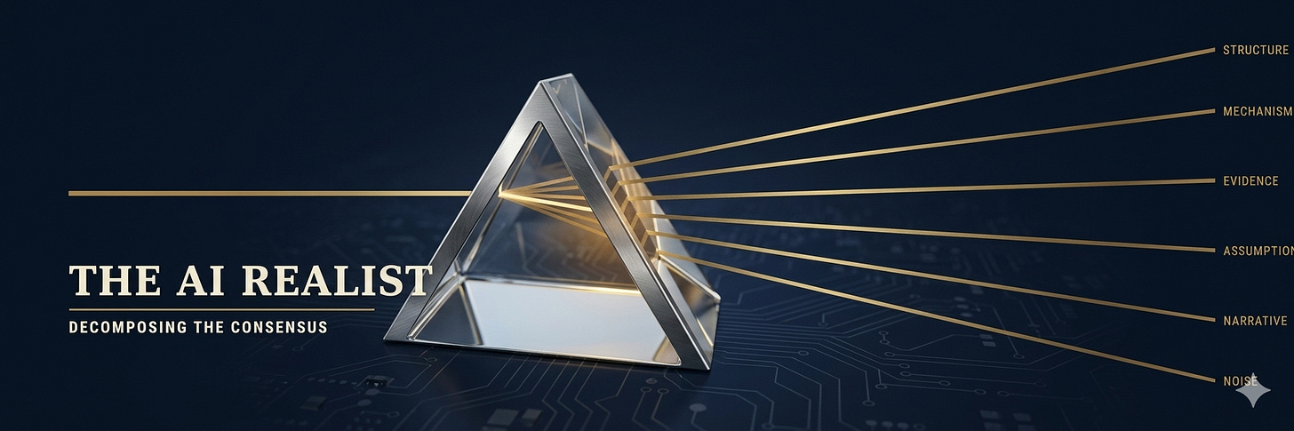 The AI Realist is a long-form structural investigation — sourced from SEC filings, government statistical surveys, legislative text, court rulings, and regulatory deliberations. Not conference keynotes. Not LinkedIn threads. Not vendor whitepapers repackaged as analysis.