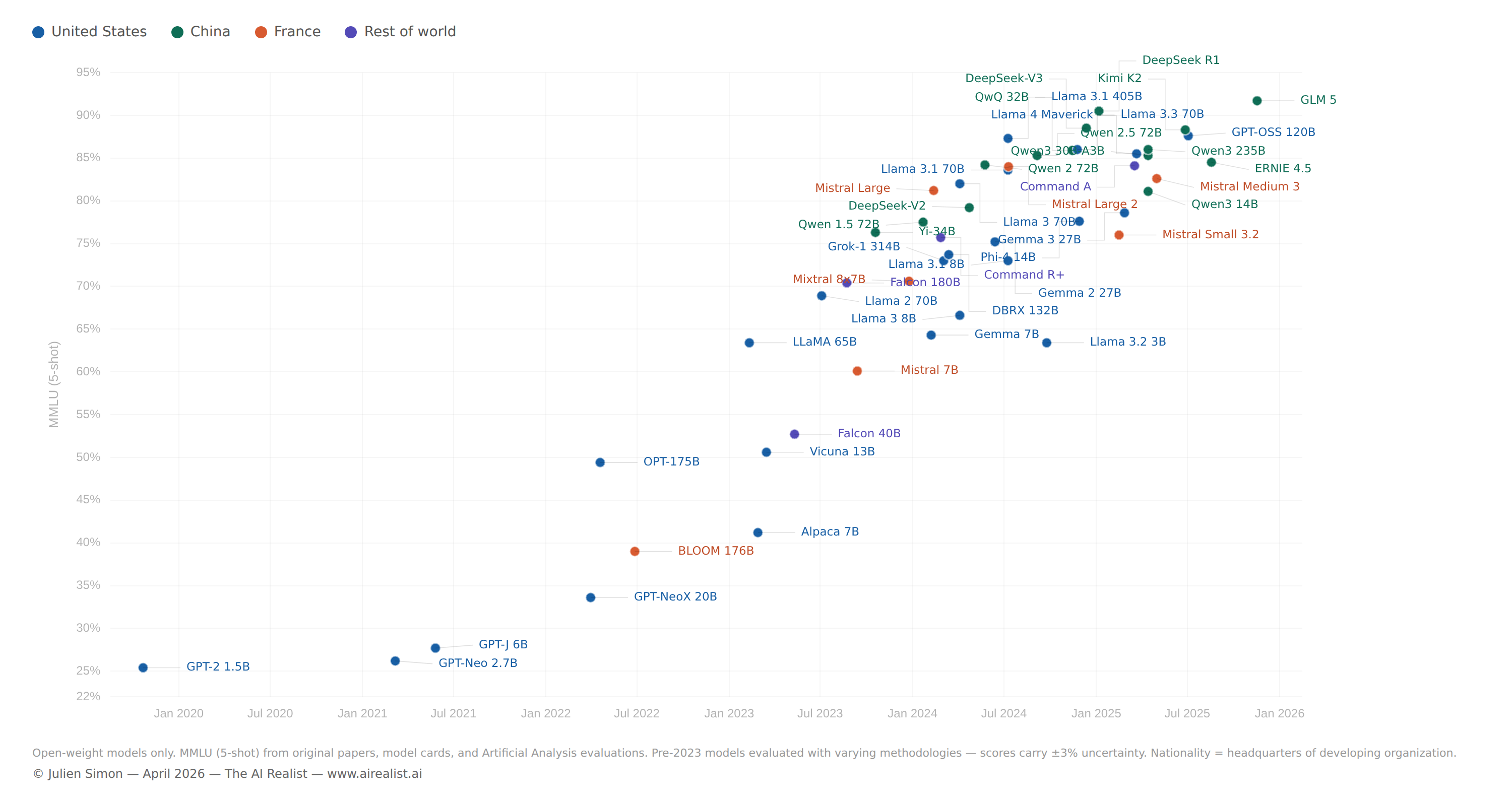 [53] Julie Bort, “Tiny startup Arcee AI built a 400B-parameter open source LLM from scratch to best Meta’s Llama,” TechCrunch, January 28, 2026. CEO Mark McQuade: “We would take a Llama model, we would take a Mistral model, we would take a Qwen model... and we would post-train it to make it better.” The pivot to pretraining was driven by dependency risk and U.S. enterprise customer discomfort with Chinese base models.