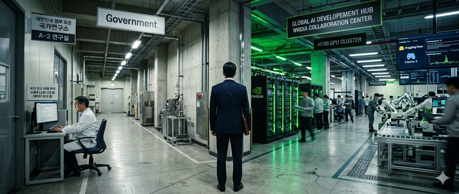 Korea is assembling the most sophisticated AI infrastructure any mid-sized power has ever built, for a revolution it cannot lead. The country is running two contradictory strategies simultaneously: one demands sovereign AI purity, the other partners with NVIDIA and uses whatever works. The question is whether that’s a systemic failure — or a strategic bet that everyone else has misread.