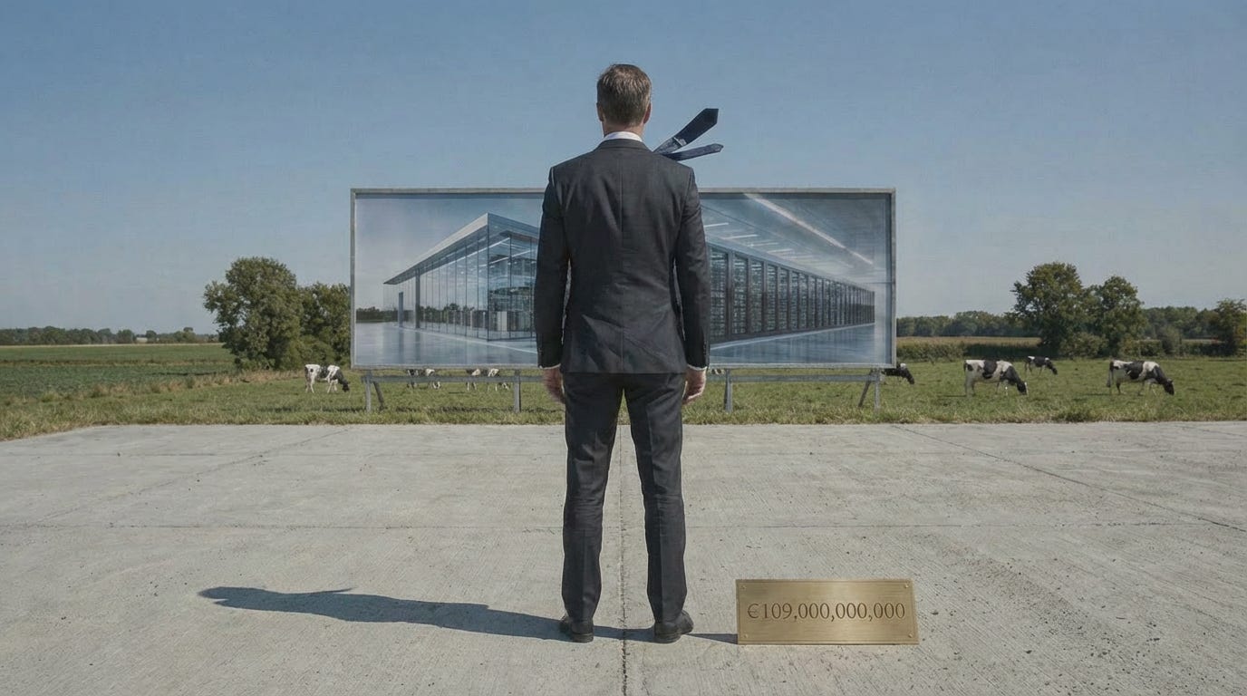 The honest number would have been enough. €25 billion from operators who know how to build, deployed in a country with the cleanest grid in Europe, the strongest engineering pipeline on the continent, and thirty-five government-designated datacenter sites with expedited grid connections — that is a serious industrial proposition. It is also a proposition that requires admitting the rest of the ledger is theater: the Gulf money that may or may not arrive, the neoclouds that lack the capital to build, the startups that lack the revenue to survive.